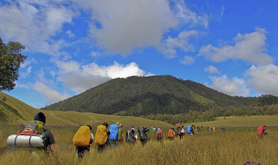 DAY 03 : SUMMIT of MT SEMERU – KALI MATI – RANU KOMBOLO. Early morning wake up, breakfast, then we climb to the summit of Mt Semeru (3,676 m) reach the craters rim, take’s 4 hours walking, watch spectacular sunrise and see Mt Bromo , Arjuna, Arguporo, Kawah Ijen, Welirang and Mt kawi. Take photograph’s and some rest befor the descend down to base camp, continue a gentle walk to Ranu Kombolo for lunch with the lake view’s. Trekking back to Ranu Pani, then proceed to Ranu Kumbolo, overnight. Here you’ll appreciate the beautiful nature.